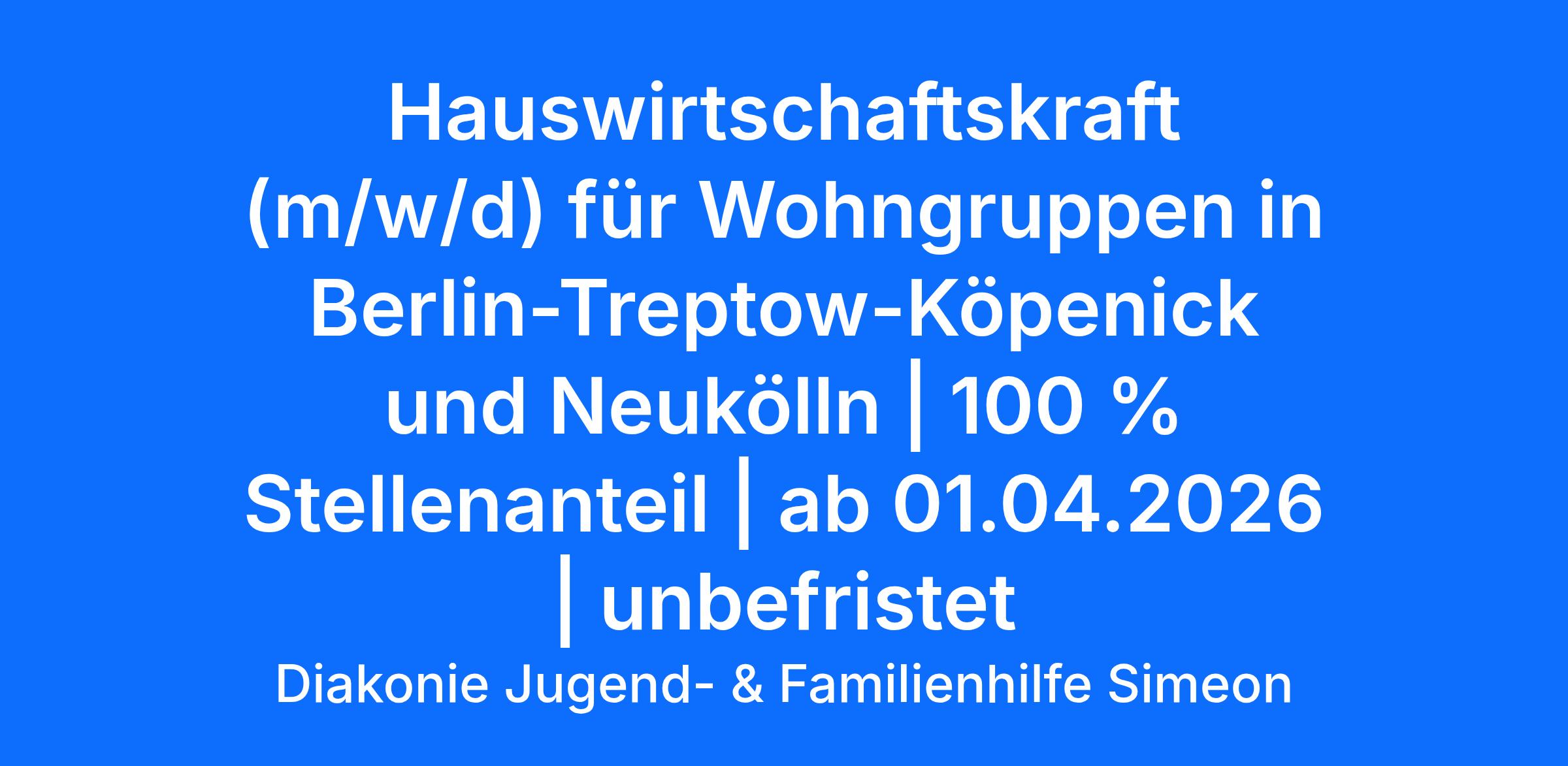 Hauswirtschaftskraft (m/w/d) für Wohngruppen in Berlin-Treptow-Köpenick und Neukölln | 100 % Stellenanteil | ab 01.04.2026 | unbefristet