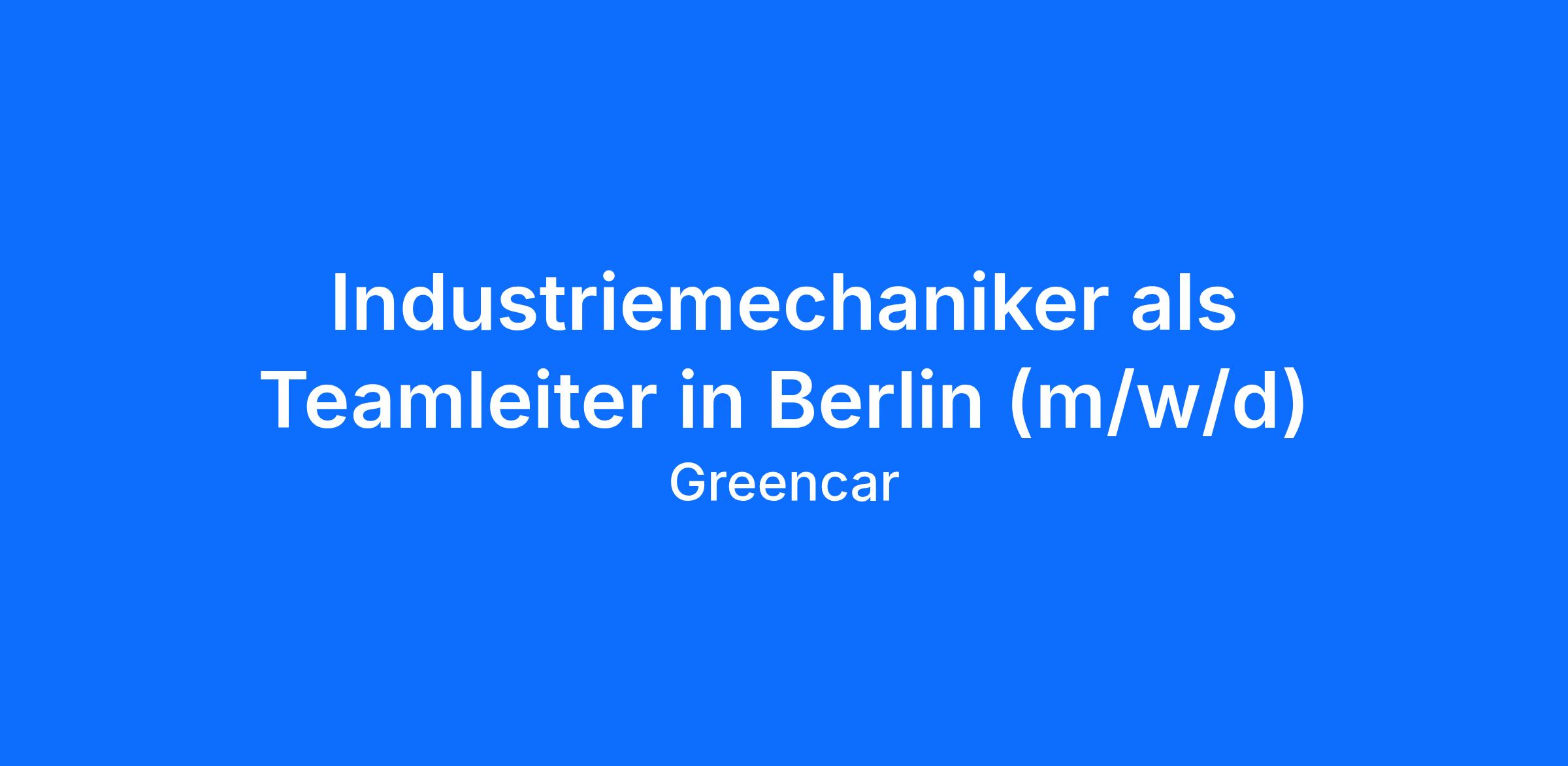 Industriemechaniker als Teamleiter in Berlin (m/w/d)