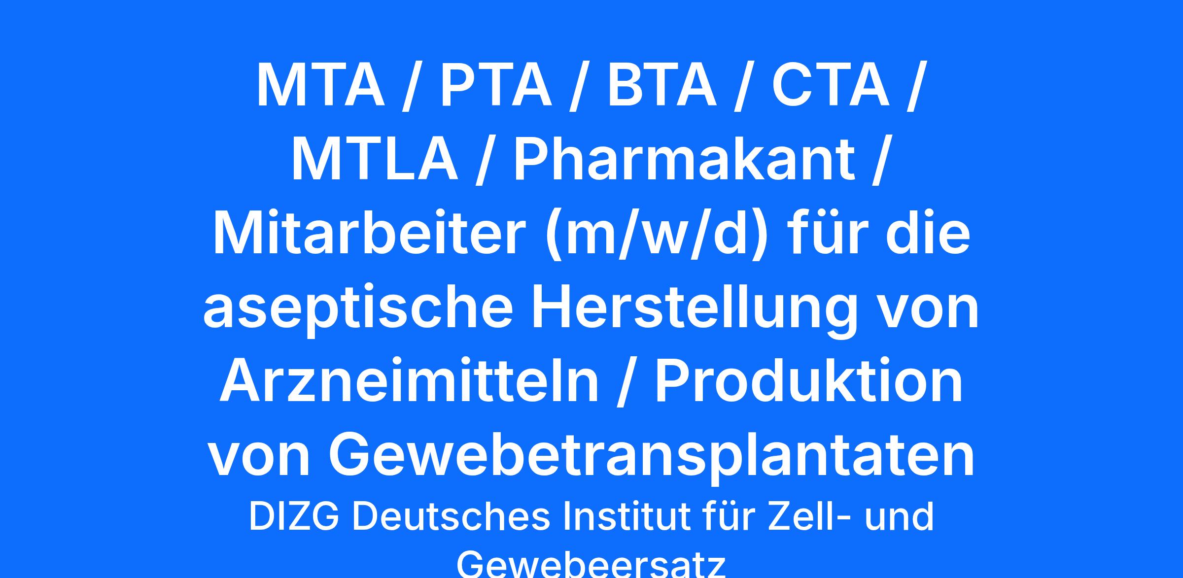 Wir suchen dich, ab sofort und in Vollzeit als Mitarbeiter* (m/w/d) für die aseptische Herstellung von Arzneimitteln / Produktion von Gewebetransplantaten.