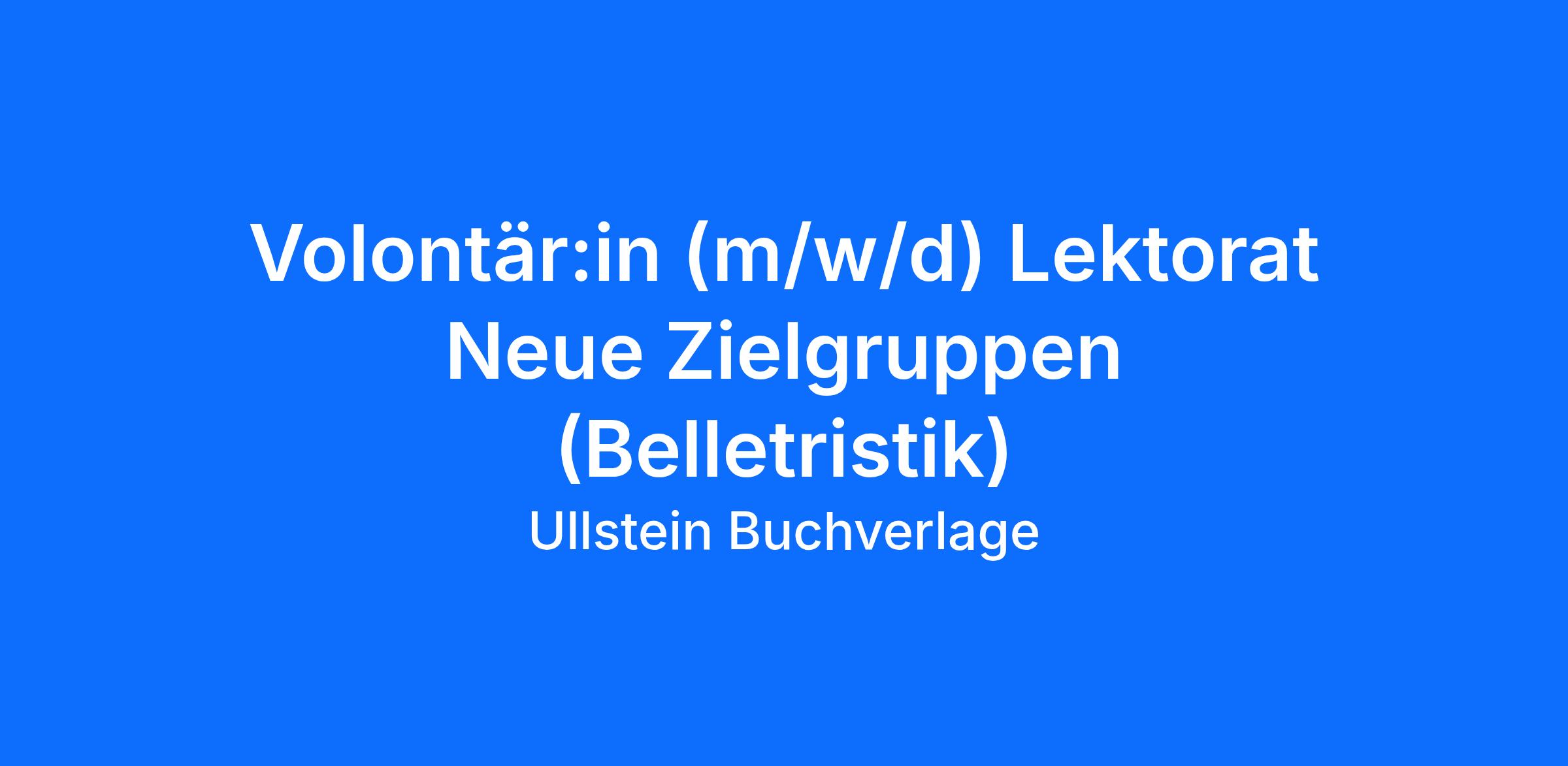 Zur Unterstützung des Lektorats Neue Zielgruppen (Belletristik) suchen wir zum nächstmöglichen Zeitpunkt eine:n